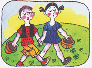 Однажды Витя и маша отправились в лес за грибами. Ясно светило солнышко, пели птицы. Ребята весело шагали к лесу. Луг заканчивался, на пути у ребят всё чаще стали появляться деревья. Витя и Маша стали внимательно смотреть вокруг, чтобы найти грибы.