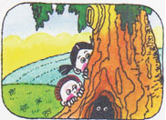 Вдруг они увидели, как из глубокого дупла дерева на них смотрели чьи – то страшные глаза. Ребята сильно испугались! Они решили, что с ними случилась беда, им угрожает опасность. Какой – то страшный зверь хочет их съесть.
