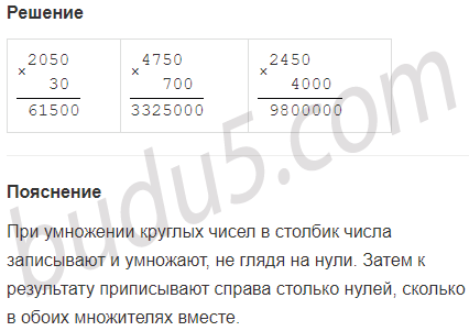 Задание № 5. Придумай и реши 3 своих примера на умножение круглых чисел в столбик.