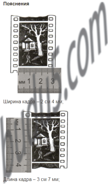 На рисунке 2 изображён в натуральную ве­личину один кадр фотоплёнки. Каких размеров по­лучится фотография при пятикратном увеличении? Уместится ли изображение этого кадра при десяти­кратном увеличении на листе бумаги, размер кото­рого 24 х 30 см?