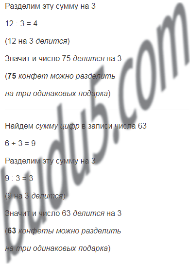 Мама принесла детям три одинаковых подарка. Может ли быть, что во всех подарках было 25 конфет? 75 конфет? 63  конфеты?