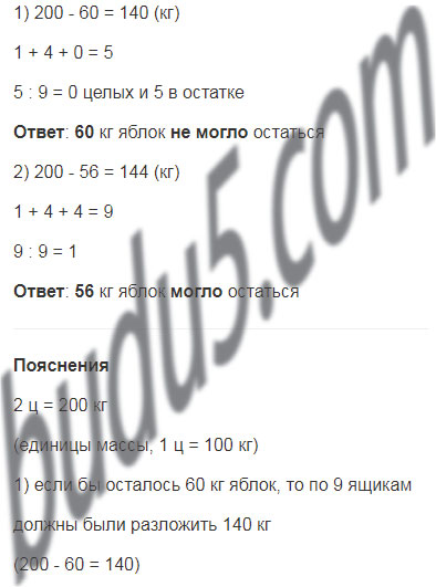 Собрали 2 ц яблок и часть из них разложили в 9 одинаковых ящиков. Могло ли после этого остаться: 60 кг яблок? 56 кг яблок?