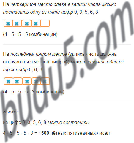 Сколько чётных пятизначных чисел можно составить из цифр 0, 3, 5, 6, 8? Есть ли среди них числа, кратные трём? кратные девяти?