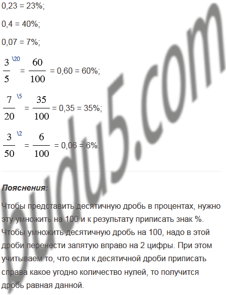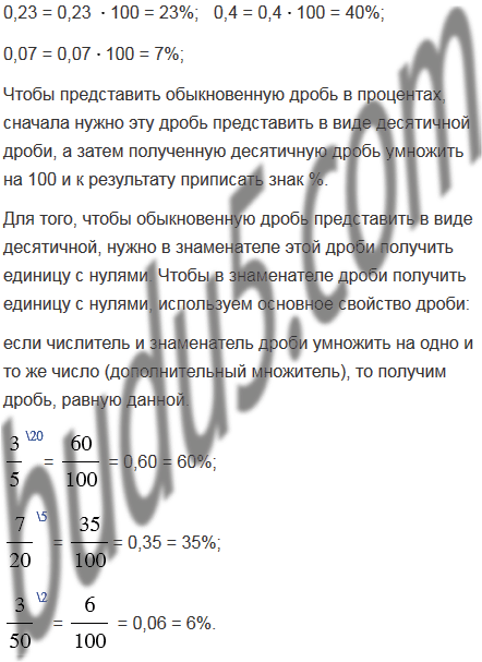 Запишите в виде процентов: 0,23; 0,4; 0,07;