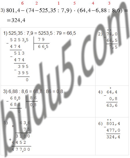 3) 801,4 - (74 - 525,35 : 7,9)(64,4 - 6,88 : 8,6);
