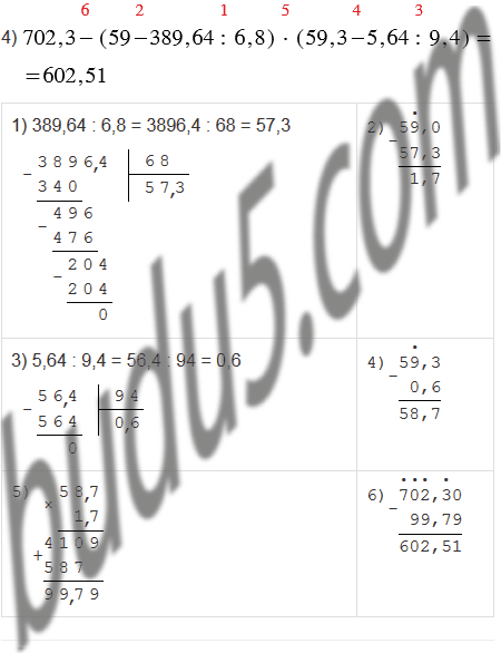 4) 702,3 - (59 - 389,64 : 6,8)(59,3 - 5,64 : 9,4).