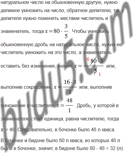 количества кваса, находящегося в бочонке. Квас из бочонка разлили в 20 кувшинов, а из бидона - в 32 банки. Где больше кваса: в одном кувшине или в одной банке? На сколько литров?