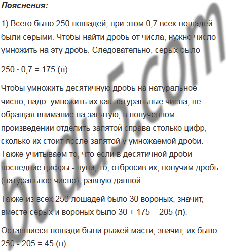 1) Из 250 лошадей было 30 вороных, а 0,7 всех лошадей были серыми. Кроме вороных и  серых, были лишь лошади серой масти. Сколько было лошадей рыжей масти?