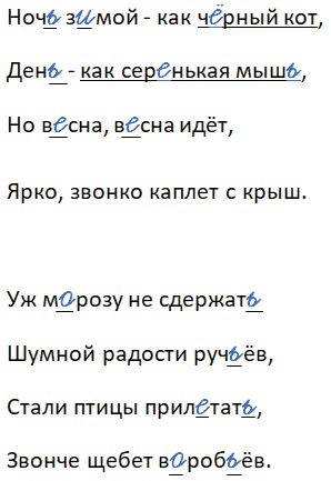 Вставим пропущенные буквы: ночь, мышьграмматический мягкий знак после шипящих, зимой – зи́мний, черныйё после шипящих, день, сдержать, прилетатьмягкий знак как показатель мягкости, серенькаясуффикс -ЕНЬК-, -ОНЬК- в прилагательных, весна – вё́сны (безударная гласная в корне), морозу – словарное слово, ручьев, воробьевразделительный мягкий знак