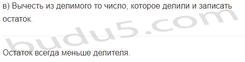 | а) 55 : 9 = 4 (ост. 1) | в) 3 : 5 = 0 (ост. 3) | д) 47 : 5 = 8 (ост. 7) |