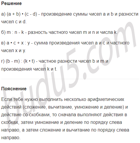 в) К произведению чисел а и с прибавить частное чисел х и у.