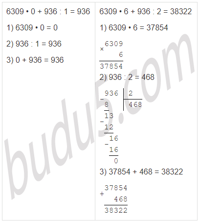 Задание № 7. Прочитай выражение разными способами: 6309 • а + 936 : b. Найди его значение, если: 1) а = 0, b = 1; 2) а = 6, b = 2.