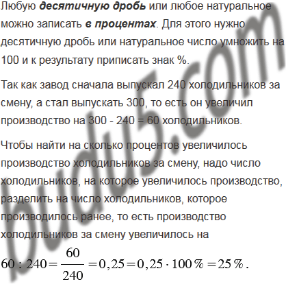 После установки нового оборудования завод за смену вместо 240 холодильников стал выпускать 300 холодильников. На сколько процентов увеличилось производство холодильников за смену?