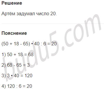 Задание № 11. Артём задумал число, умножил его на 6, разделил на 40, прибавил 65 и вычел 18. В результате у него получилось 50. Какое число задумал Артём?