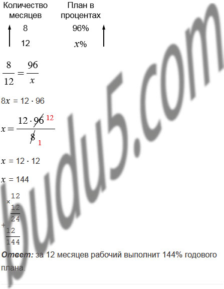 За 8 месяцев рабочий выполнил 96% годового плана. Сколько процентов годового плана выполнит рабочий за 12 месяцев, если будет работать с той же производительностью?