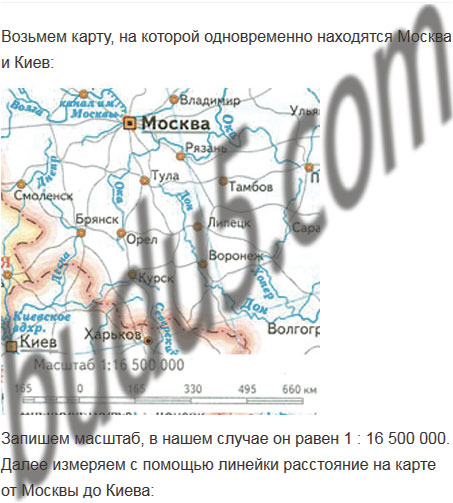 Найдите с помощью карты расстояние от Москвы до Киева.