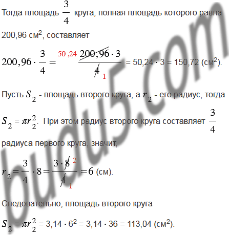 Найдите площадь круга, у которого радиус 8 см. Найдите площадь второго круга, у которого радиус составляет радиуса первого круга.