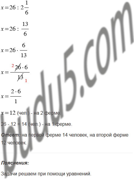 2) На двух животноводческих фермах работают 26 человек. На первой ферме работают в раза больше людей, чем во второй. Сколько человек работают на каждой ферме?