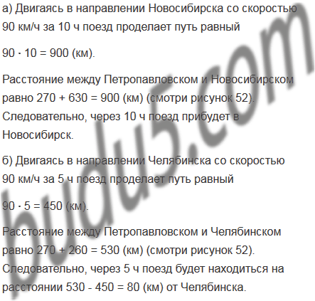 Поезд вышел со станции Петропавловск (рис. 52) и идет со скоростью 90 км/ч. В какой город придет поезд через 3 ч? Где будет находиться поезд: