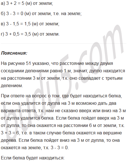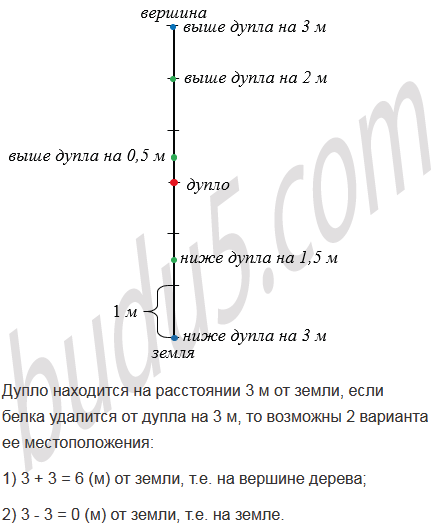 Белка вылезла из дупла и бегает по стволу дерева вверх и вниз (рис. 51). Покажите, где будет находиться белка, если она удалится от дупла на 3 м. Сколько ответов можно дать на этот вопрос? Покажите на рисунке, где окажется белка, если она будет находиться: