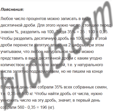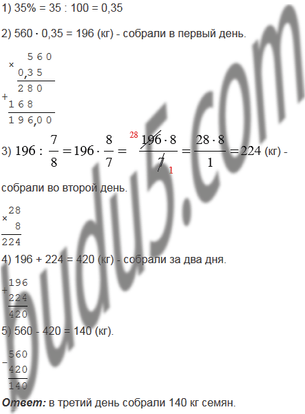 За три дня заготовители собрали 560 кг семян различных деревьев. В первый день они собрали 35% всех собранных семян, что составляло