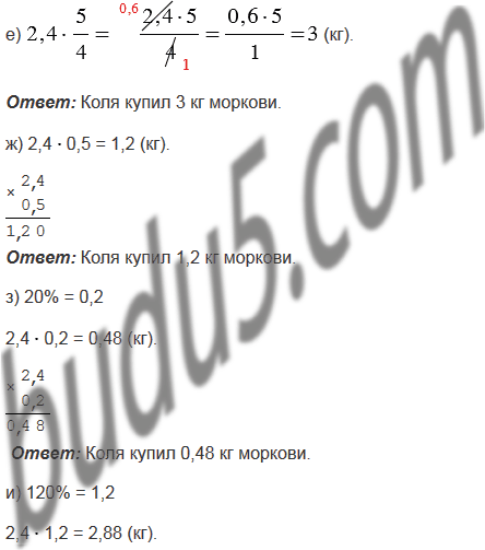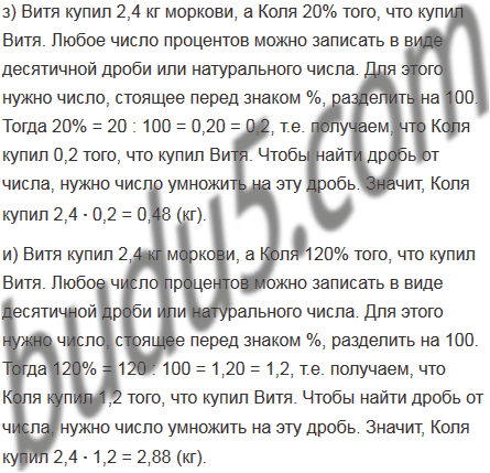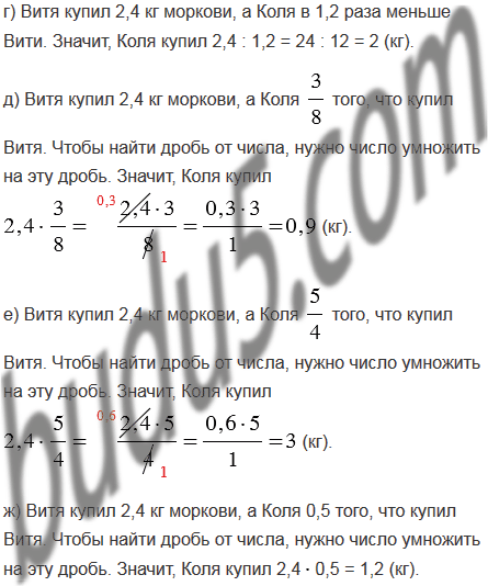 Витя купил 2,4 кг моркови. Сколько моркови купил Коля, если известно, что он купил: