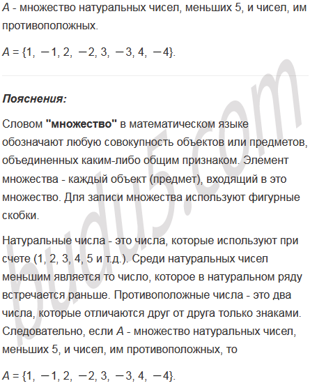 Запишите множество натуральных чисел, меньших 5, и чисел, им противоположных.