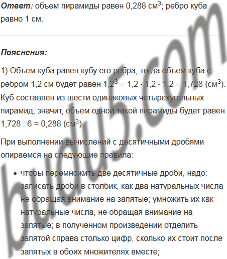 Из рисунка 20 видно, что куб можно составить из шести одинаковых четырехугольных пирамид, у которых вершина О, а основаниями служат грани куба. Найдите объем пирамиды, если ребро куба 1,2 см. Найдите ребро куба, если объем одной пирамиды