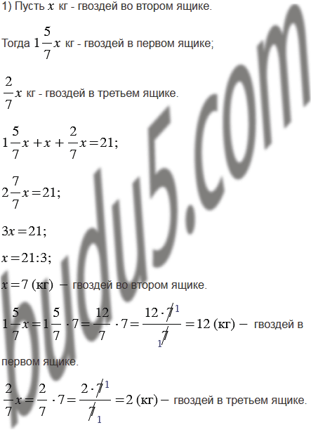 1) В трёх ящиках 21 кг гвоздей. В первом ящике в