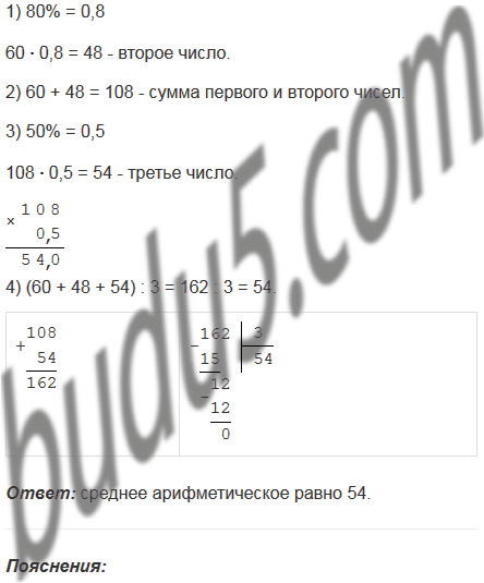 Первое число 60. Второе число составляет 80% первого, а третье число составляет 50% суммы первого и второго. Найдите среднее арифметическое этих чисел.