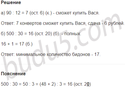 а) У Васи в кошельке 90 руб. Сколько конвертов по цене 12 руб. он сможет купить?