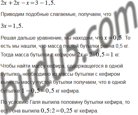Бутылка с кефиром в 2 раза тяжелее пустой бутылки (рис. 47). Галя выпила половину бутылки кефира. Сколько граммов кефира выпила Галя?