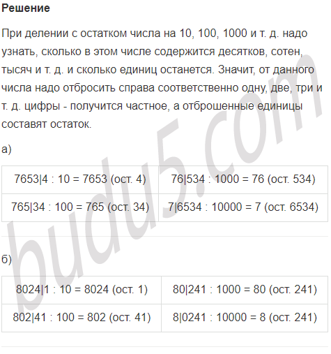 Задание № 7. Как разделить число с остатком на 10, 100, 1000 и т. д.? Выполни деление по образцу.