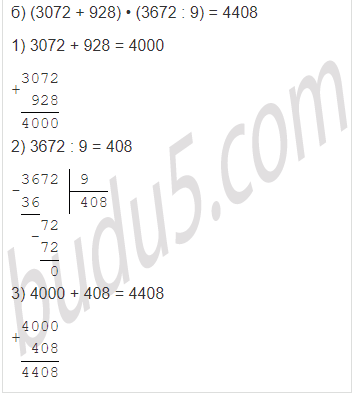 | а) 806 - 243 и 35 - 27 | б) 3072 + 928 и 3672 : 9 |
