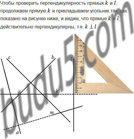 Определите сначала на глаз, а потом проверьте с помощью чертежного угольника, какие пары прямых на рисунке 52 перпендикулярны.