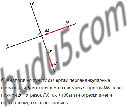 Начертите два перпендикулярных отрезка - АВ и МN - так, чтобы они: а) не пересекались; б) пересекались.