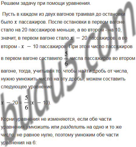 В каждом из двух вагонов трамвая было одинаковое число пассажиров. После остановки в первом вагоне стало на 20 пассажиров меньше, а во втором - на 10 и число пассажиров в первом вагоне составило