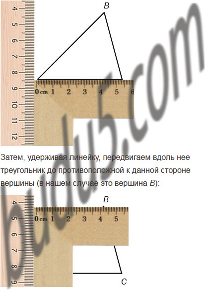 Начертите треугольник и проведите через каждую вершину прямую, параллельную противоположной стороне.