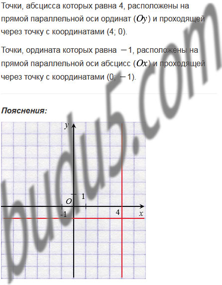 Где расположены на координатной плоскости точки, абсцисса которых равна 4? А где расположены точки, ордината которых равна