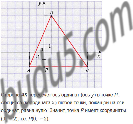 2). Найдите координаты точки пересечения стороны АК с осью ординат.
