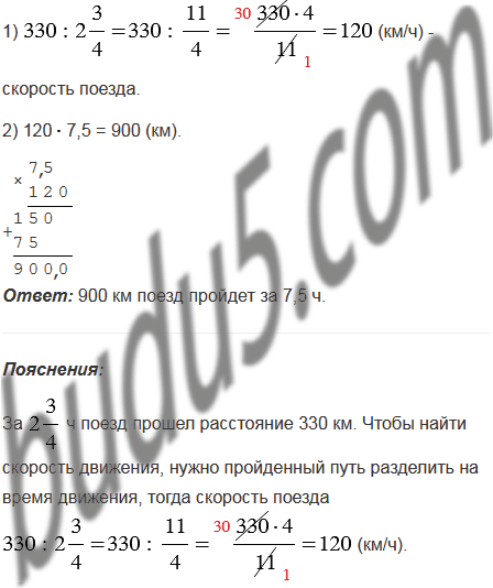 ч поезд прошел расстояние 330 км. Какой путь пройдет поезд за 7,5 ч, если будет идти с той же скоростью?