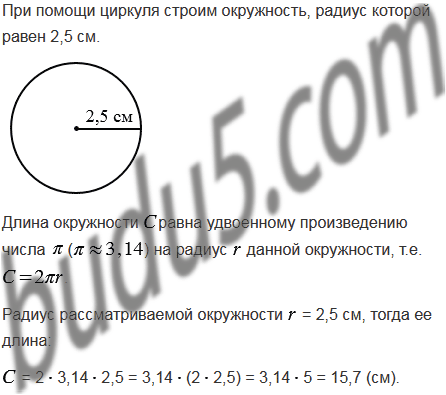 Начертите окружность, радиус которой 2,5 см, и отрезок, длина которого равна длине окружности (длину окружности округлите до десятых долей сантиметра).