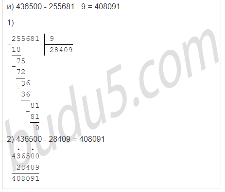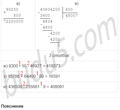 | в) 800 • 90250 | е) 40804200 : 600 | и) 436500 - 255681 : 9 |