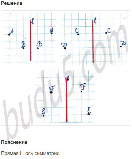 Задание № 3. Скопируй рисунки в тетради по клеточкам. Построй точки, симметричные данным относительно прямой l. Проверь правильность построений с помощью измерений и с помощью кальки.