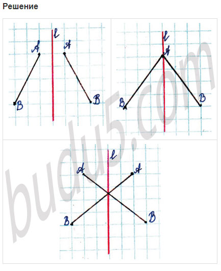 Задание № 4. Построй в тетради отрезки, симметричные данным относительно прямой l. Как можно проверить, правильно ли они построены?