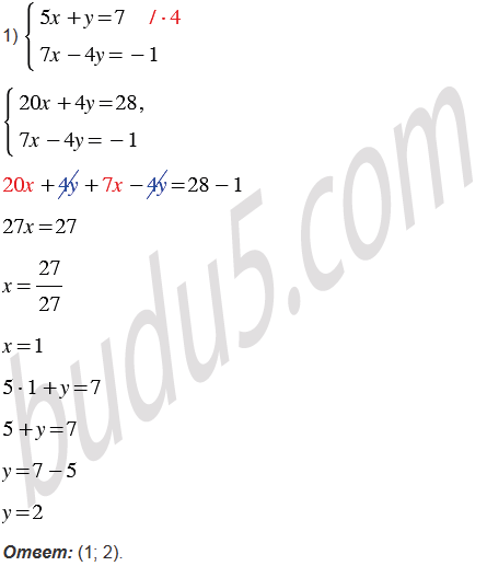 Решите систему уравнений методом сложения: