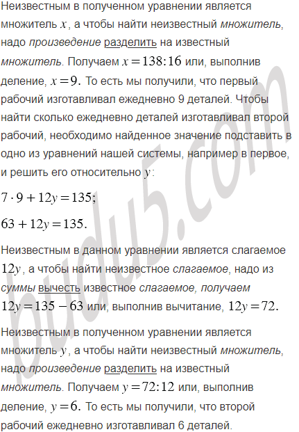 Двое рабочих изготовили 135 деталей. Первый рабочий работал 7 дней, а второй - 12 дней. Сколько деталей изготавливал ежедневно каждый рабочий, если первый за 3 дня сделал на 3 детали больше, чем второй за 4 дня?