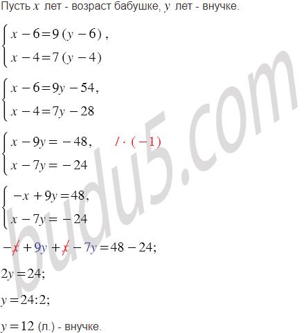 Бабушка 6 лет тому назад была в 9 раз старше внучки, а 4 года тому назад - в 7 раз старше. Сколько лет бабушке и сколько внучке?