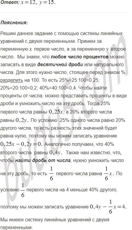 Известно, что 25% одного числа равно 20% другого числа, а первого числа на 4 меньше 40% другого. Найдите данные числа.