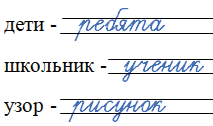 Прочитайте. Подберите к каждому слову синоним (слово, близкое по значению). Запишите его.